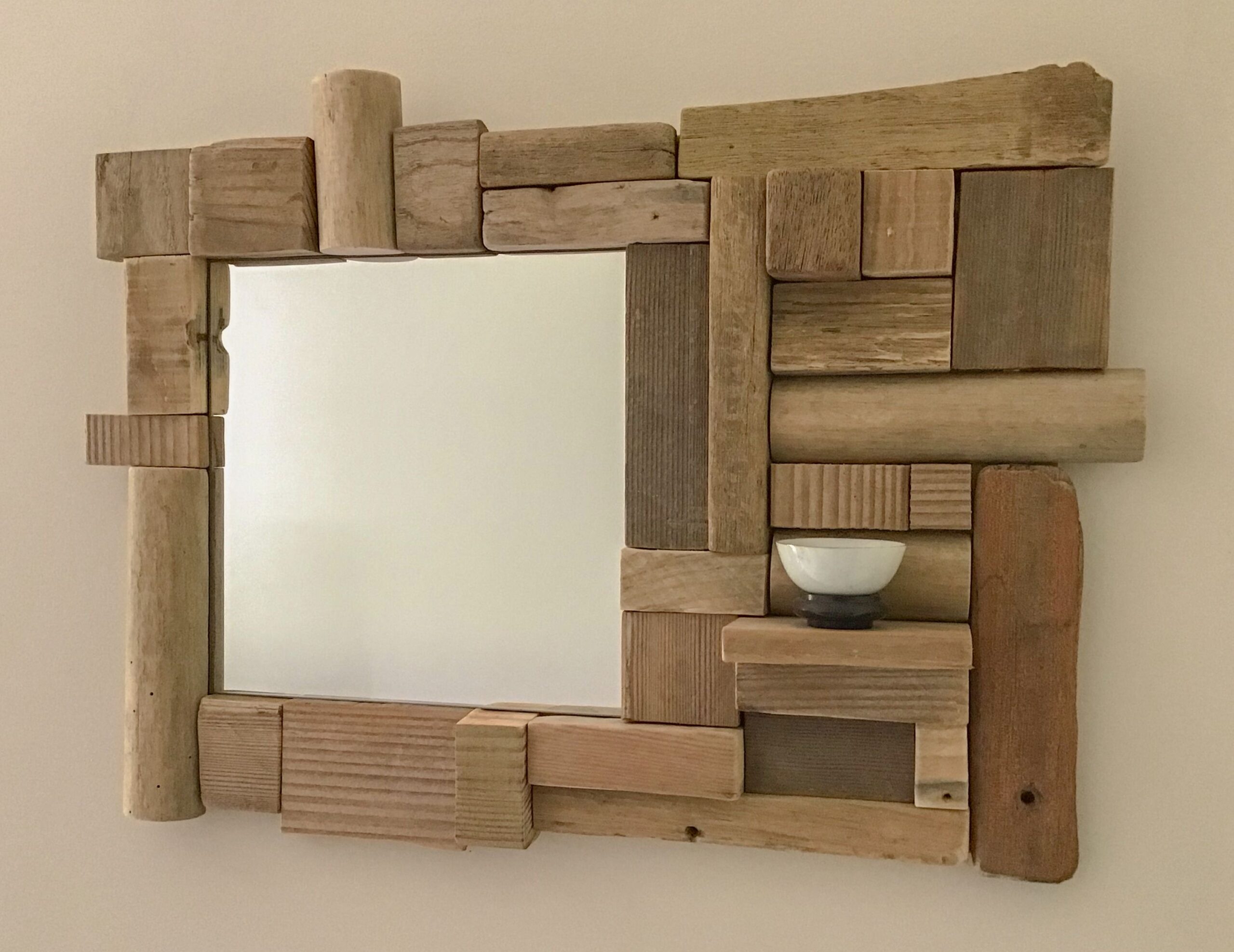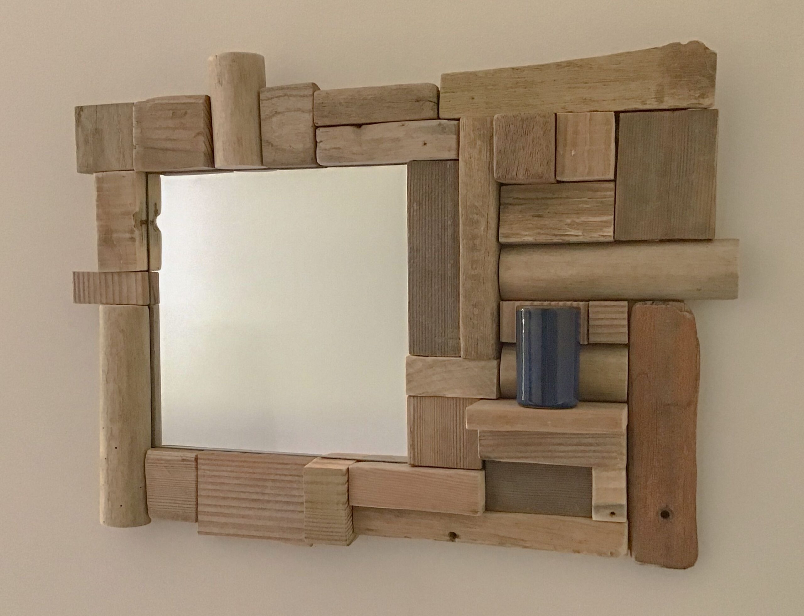 Miroir en bois flotté et sa petite étagère. Dans l’esprit bord de mer, ce miroir a été confectionné pour tous les amoureux de la mer et de la nature. Le bois flotté est non seulement beau mais écologique. Il conviendra parfaitement dans votre intérieur comme dans un salon, une salle à manger, une chambre, une salle de bain ou tout autre endroit.