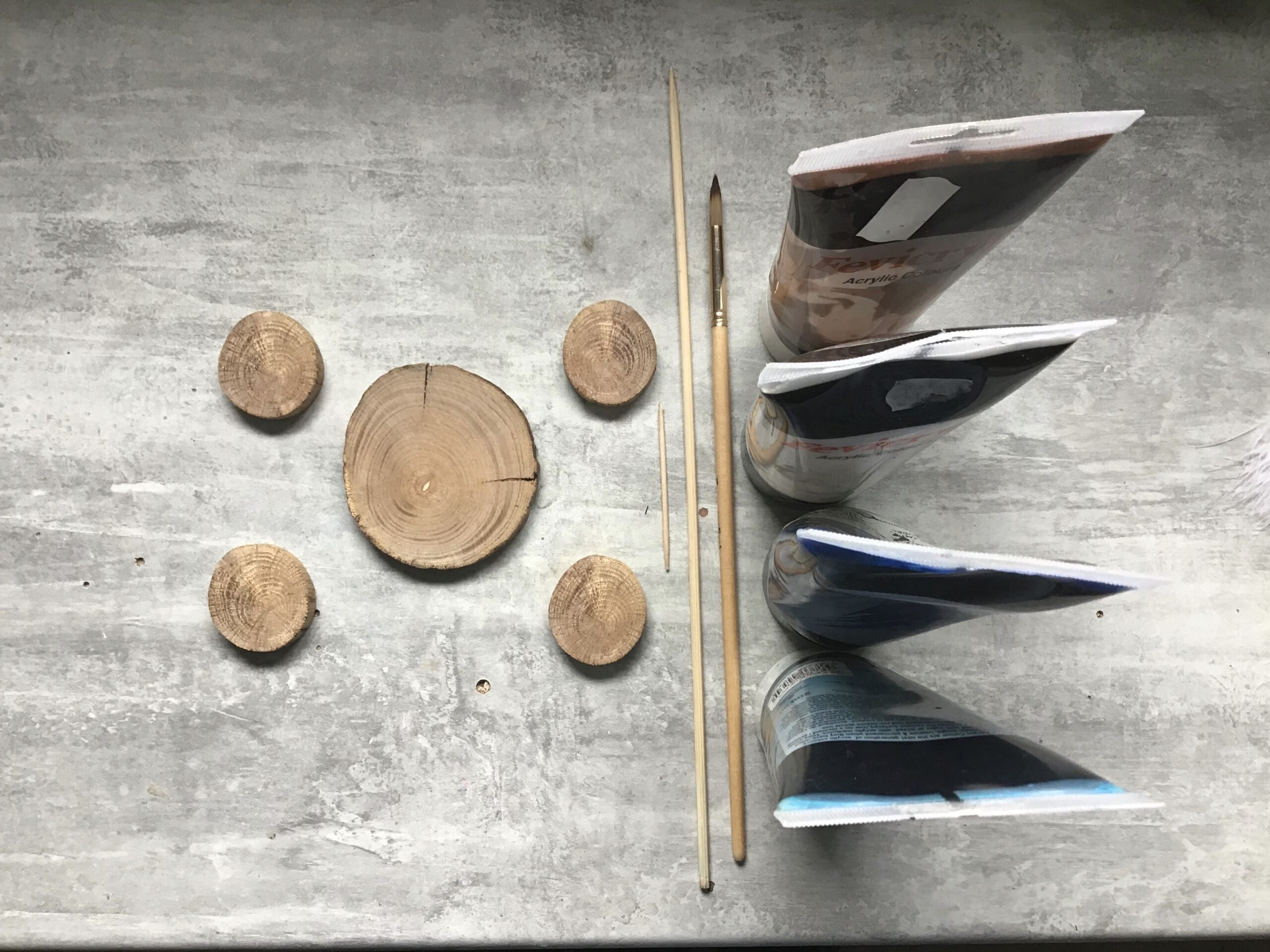 - Coupez 5 disques de bois de diamètres différents et les poncer.