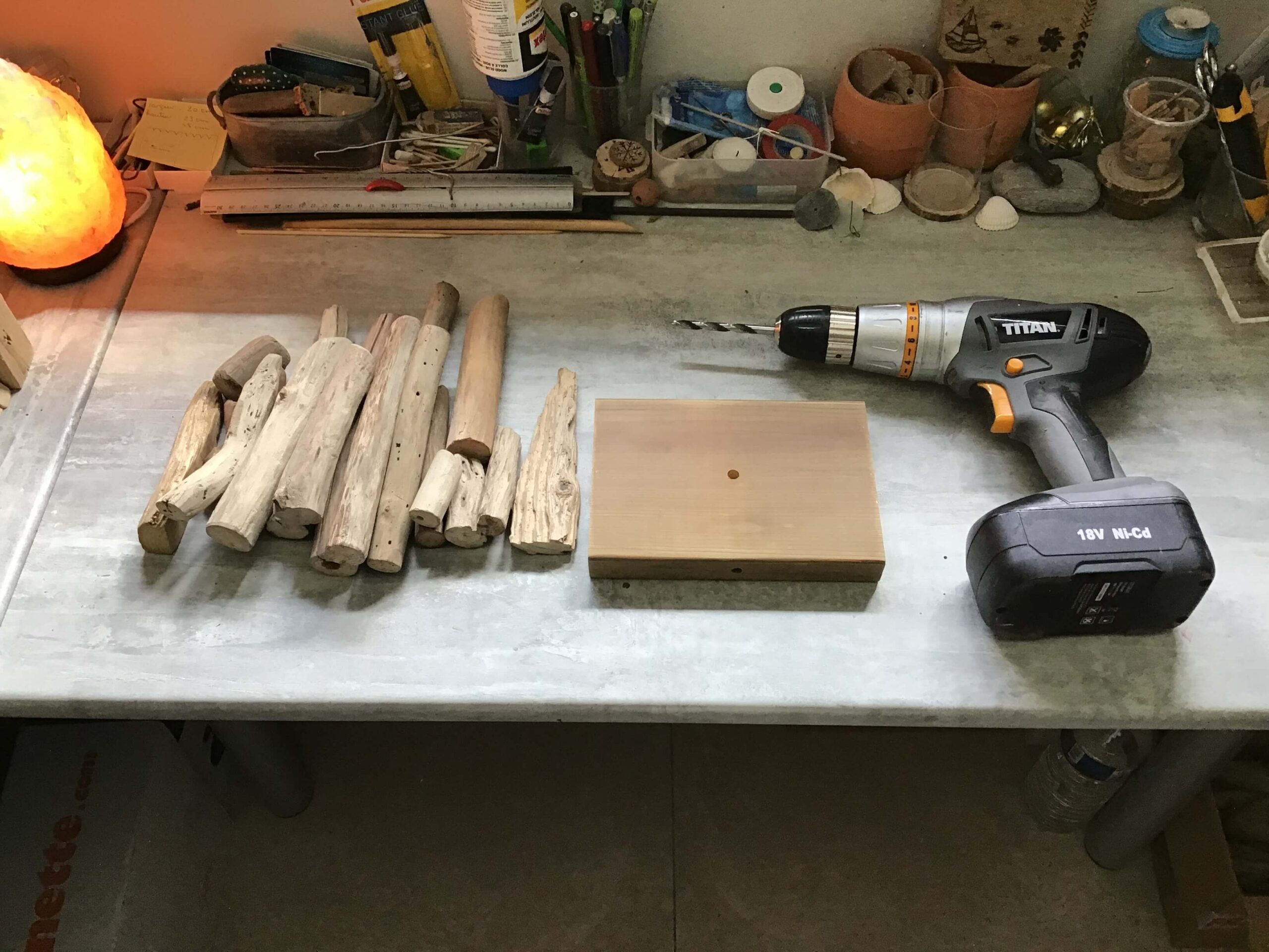 - Sélectionnez les 17 bois flottés qui constitueront votre lampe.